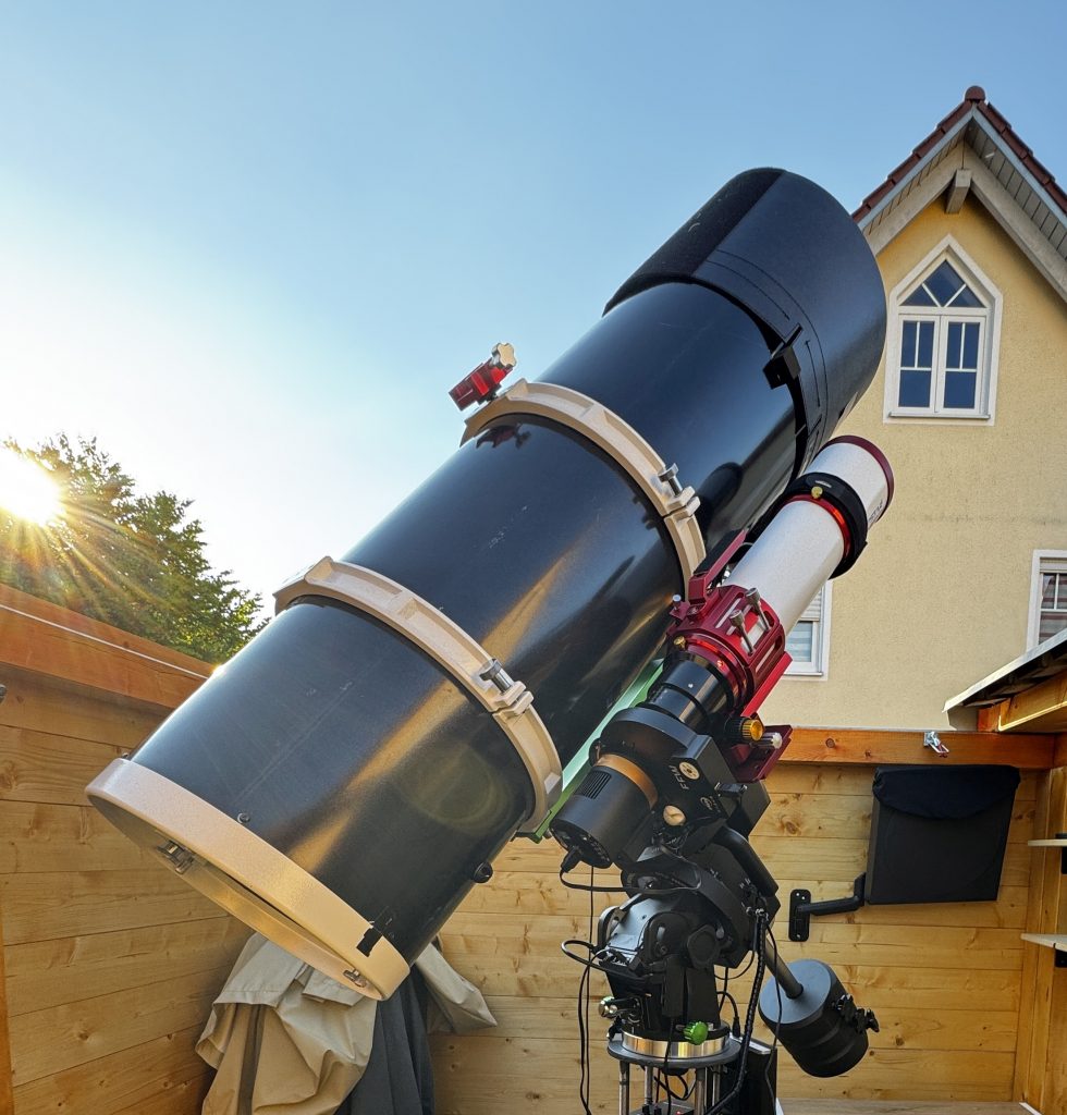 Das 300Quattro ist ein robustes Teleskop mit hervoragender Lichtstärke und Abbildungsqualität. Die Kollimation ist beherrschbar und sehr stabil. Ich habe die Ränder des Haupt und Fangspiegels geschwärzt um die Sterne feiner abbilden zu können. Ein Blendenring war nicht notwendig. Weiterhin habe ich eine DIY Fangspiegelheizung eingebaut.