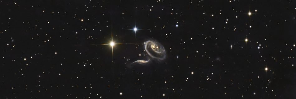 ARP227 besteht aus zwei Hauptgalaxien, NGC 474 und NGC 470, am Bildrand ist auch noch NGC 467 zu sehen, die ebenfalls interessante Sternenströme zeigt. NGC474 ist höchstwahrscheinlich in der Vergangenheit mit mehreren ggf. auch kleineren Galaxien kollidiert und verschmolzen. Dies liegt schon einige Zeit zurück, man geht von ca einer Milliarde Jahren aus. NGC470, die …