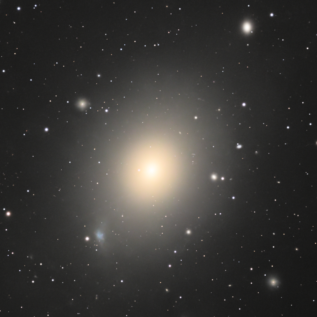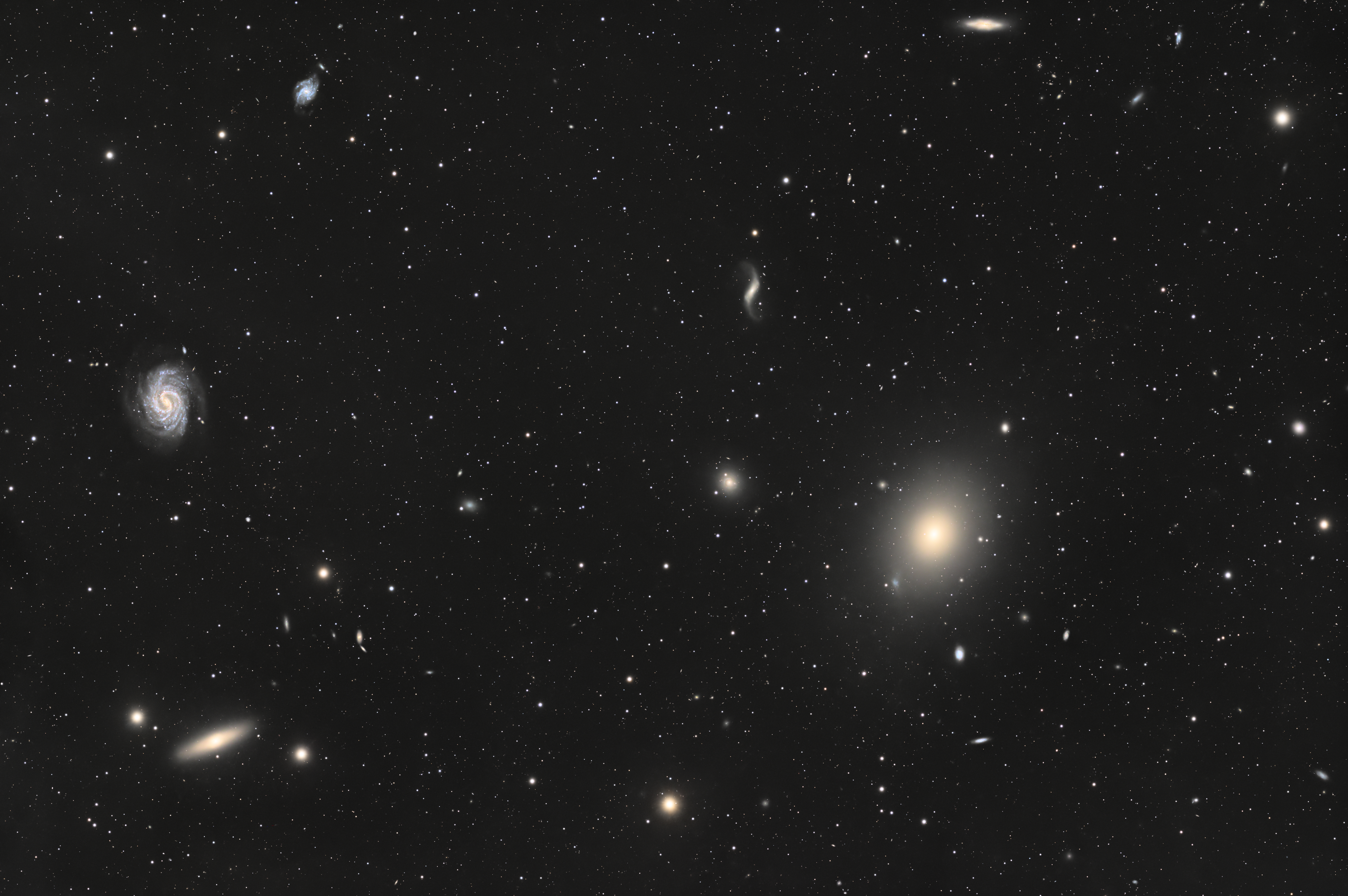 Als Teil des Virgo Clusters sind natürlich weitere Galaxien im Bild zu erkennen (Norden ist oben). Direkt im Halobereich von M49 finden wir auch PGC41258 die zusammen mit M49 die Bezeichnung Arp 134 trägt. Weiterhin ist die einem Notenschlüssel ähnelnde Galaxie NGC4488 zu sehen (nordwestlich). Ganz im Westen sehen wir die Sprialgalaxie NGC4535 und ganz im Nordwesten NGC4519. Detailansichten siehe unten.